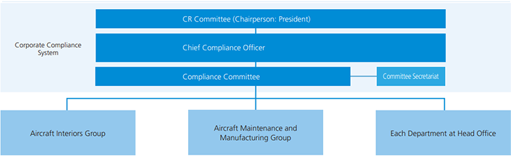 As an organization subordinate to the CR Committee, we have established a Compliance Committee chaired by the Chief Compliance Officer to promote compliance activities for the Group. We established the Compliance Committee Secretariat in the Corporate Administration & Human Resource Department at the Head Office. It formulates a plan for overall compliance activities each fiscal year and leads the entire Group. In addition, the Chief Compliance Officer regularly reports on the activities of the Compliance Committee to the Board of Directors.