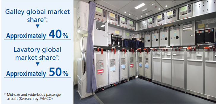 The aircraft galleys and lavatories that we manufacture are installed in many mid-body and wide-body assenger aircraft operated by airlines the world over. Our own surveys show that we have approximately 40% global market share in galleys and 50% in lavatories.