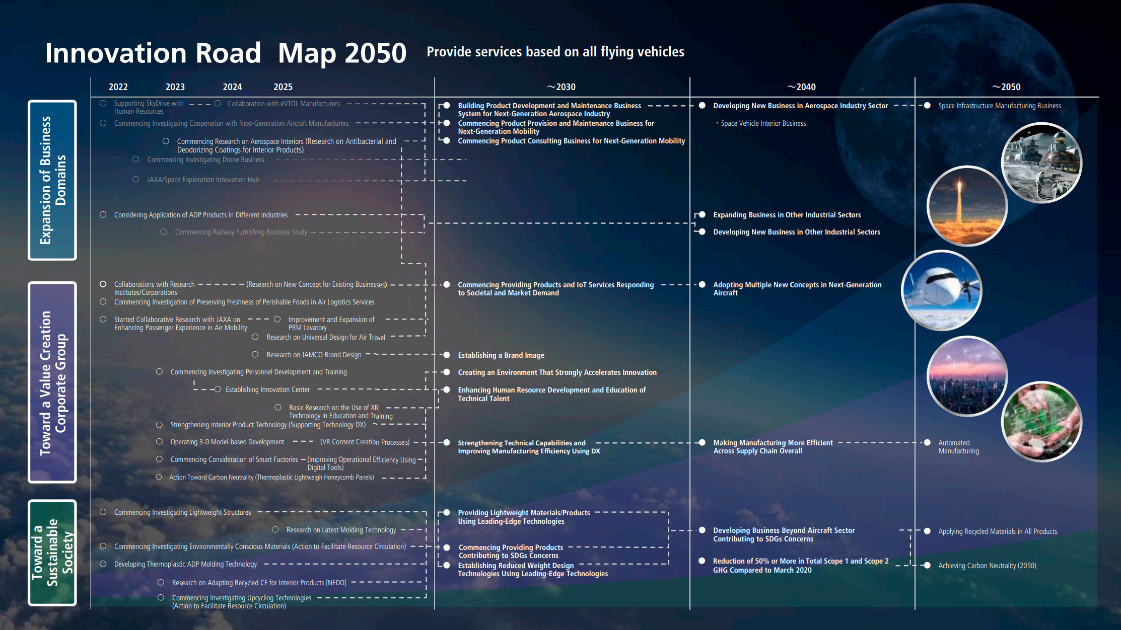 in Innovation Road Map 2050. We are conducting research and development and technical development in accordance with this roadmap, and also promoting the education of personnel involved in these activities.